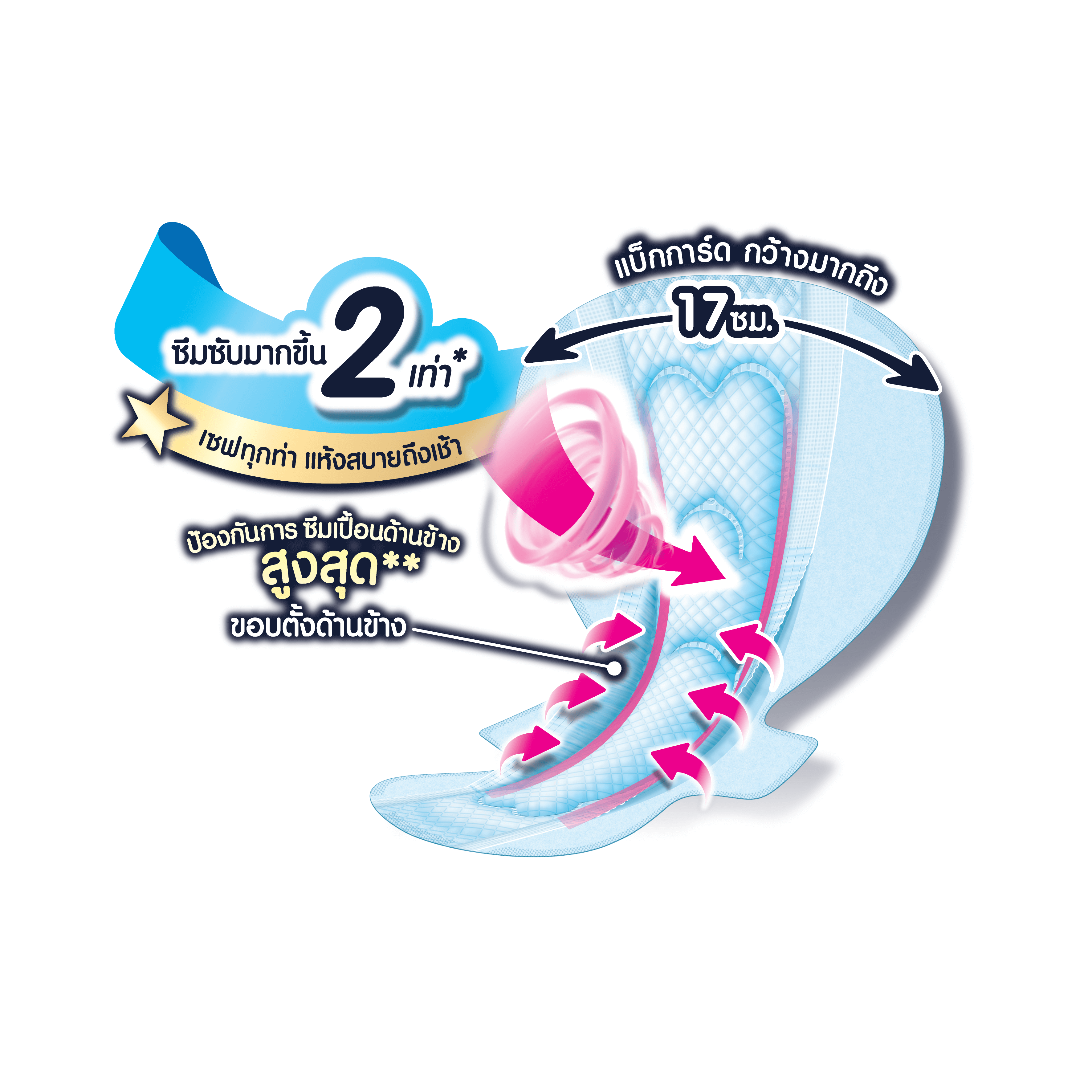 - ซึมซับเร็วแม้ประจำเดือนเป็นก้อนลิ่ม